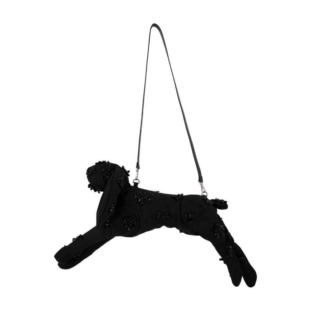 The playful sculptural crossbody bag by Simone Rocha redefines contemporary style with its unique leaping dog silhouette. Fashioned from premium synthetic material, this bag features a textured black base and a slim adjustable strap for versatile wearing options. Perfect for those who seek to elevate their accessory game with a touch of whimsy.