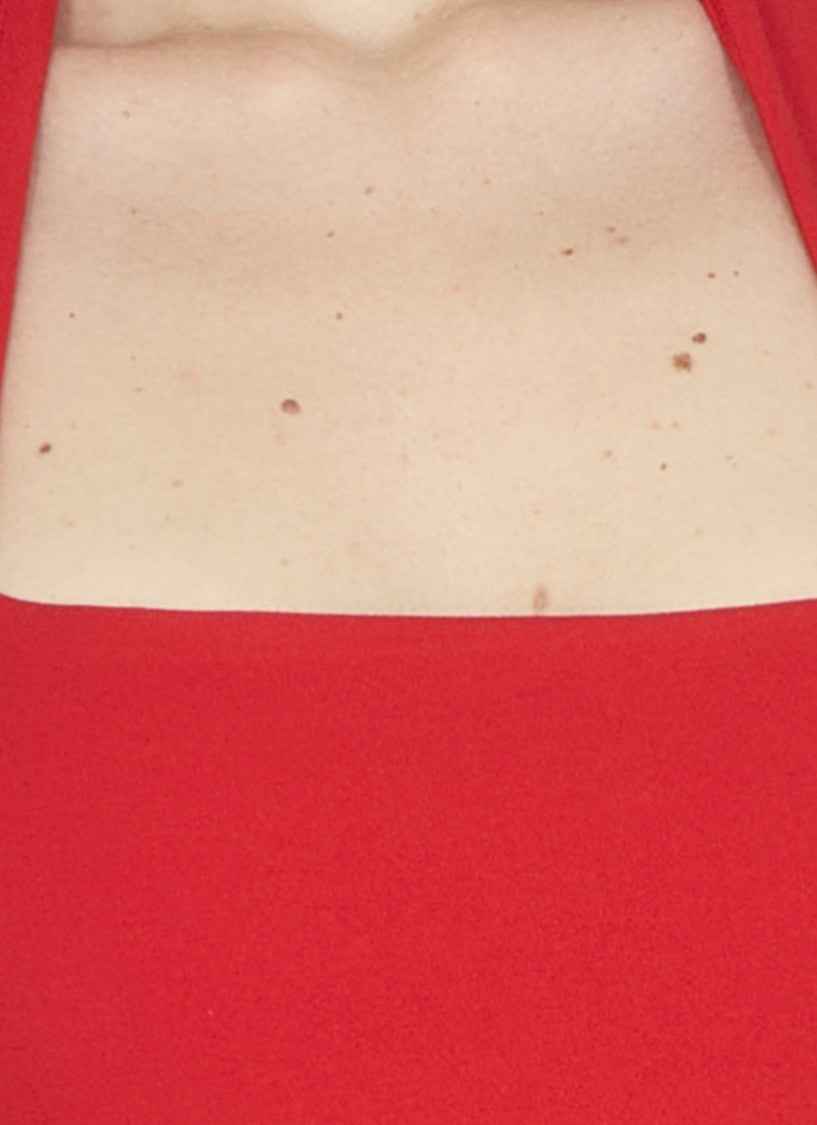 This floor-length dress by Solace London embodies sophistication with its striking straight neckline and form-fitting silhouette. The design gracefully cascades to the hem, featuring a discreet rear hook and zip fastening for a seamless appearance. Strategically placed rear vents enhance movement, making it ideal for any occasion.