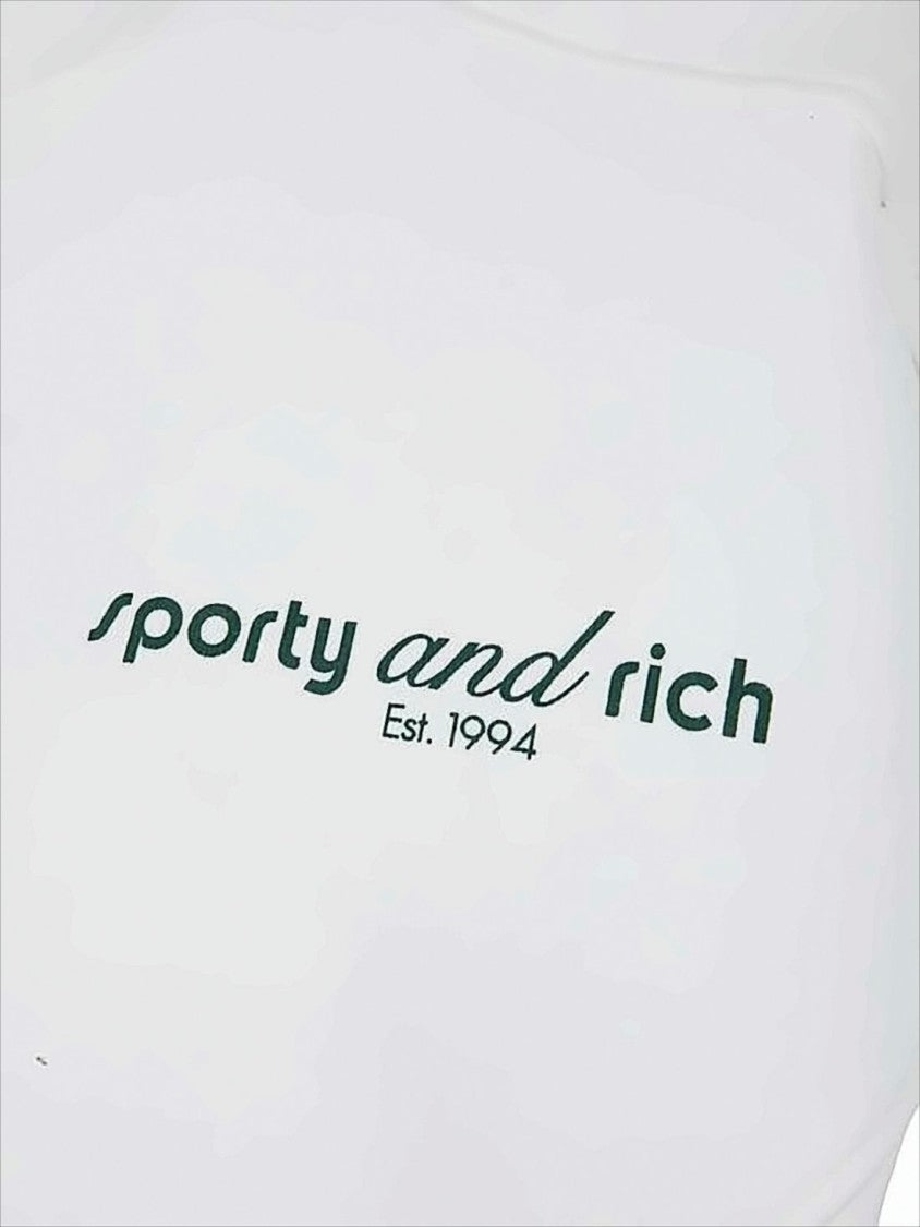 Crafted by Sporty and Rich, this long sleeve pullover epitomizes casual sophistication and sporty elegance. Made from 100% premium cotton, it features a contemporary half-zip closure, high collar, and ribbed cuffs and hem, ensuring both comfort and style. The subtle dark green logo text on the front and back adds a touch of understated branding, perfect for a relaxed yet refined look.