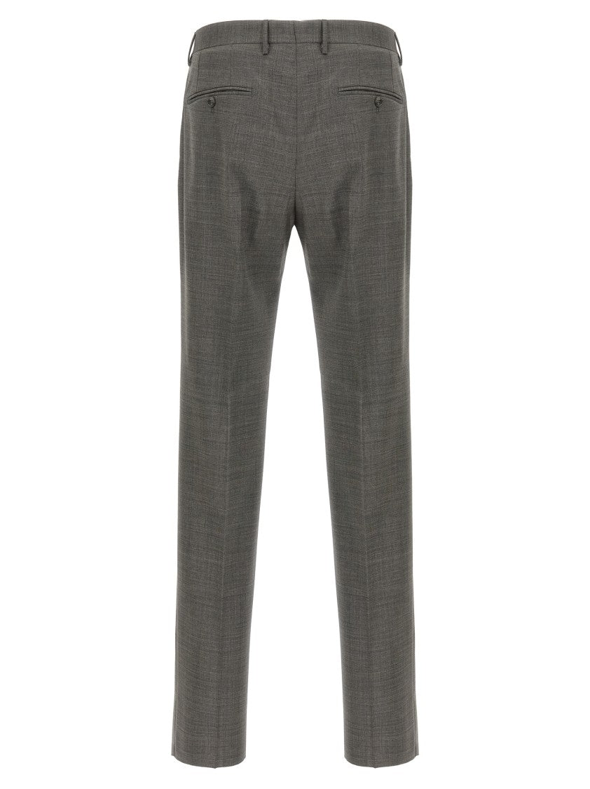 TAGLIATORE presents a distinguished melange stretch virgin wool dress, seamlessly combining elegance and versatility. It features a single-breasted blazer with exquisite mirror lapels and an unlined design, highlighted by functional chest and flap pockets, elegant buttonhole cuffs, and stylish back slits. The coordinating trousers present a refined flat front with a stretched pleat and practical pockets, finished with a secure zip and button closure. This ensemble effortlessly embodies sophistication, making it ideal for formal occasions.