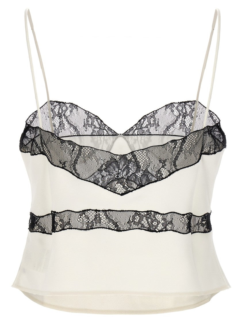 The Andamane presents the 'Narcisa' satin top, masterfully crafted in Italy. This elegant piece features delicate lace inserts and thin adjustable straps, creating a sophisticated silhouette with a layered effect. The intricate lace detailing enhances its luxurious appeal, making it a quintessential addition to any refined wardrobe. Ideal for versatile styling, this top embodies femininity and grace.