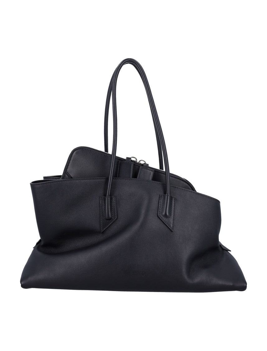 The Attico presents the LA PASSEGIATA MEDIUM, an embodiment of modern elegance. This medium-sized shoulder bag features a soft, slouchy silhouette, expertly crafted from premium smooth material. With its two long, rounded handles and top zipper closure, it offers both style and functionality. The minimalist design is highlighted by subtle stitching details and a delicately gathered structure at the sides, making it a versatile accessory for any occasion.