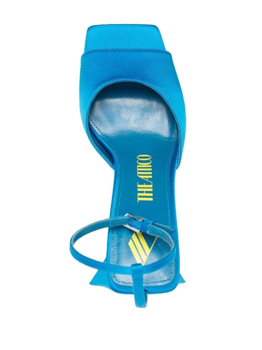 The Attico presents exquisite open-toe 85mm sandals, embodying modern luxury. A striking blue polyester upper features a unique geometric heel that adds artistic flair. Thoughtfully designed, the adjustable ankle strap ensures a secure fit, while the inner lining of sumptuous leather enhances comfort. Perfect for elevating casual outings, these sandals reflect the pinnacle of contemporary style.