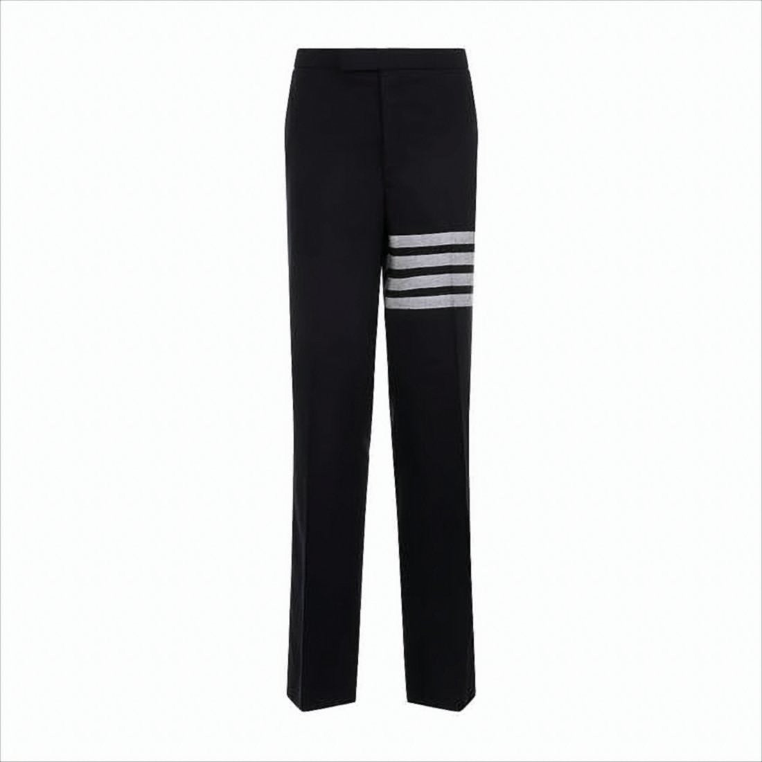 Thom Browne's tailored suit pants showcase a refined aesthetic, made in Italy from a luxurious blend of wool and cashmere. The modern fit creates a flattering silhouette, complemented by elegant side stripes that add a contemporary twist to classic tailoring. An essential addition for the discerning gentleman's sophisticated wardrobe.