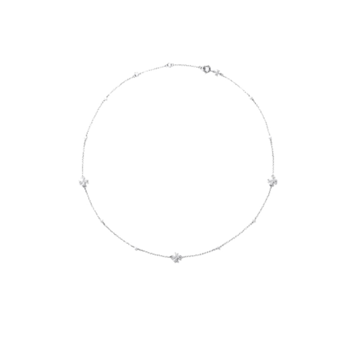 The Kira Pearl Necklace by Tory Burch embodies sophistication and versatility. Crafted with a delicate chain, this exquisite piece features a stunning mix of cultured pearls and glass, interspersed with sparkling accents. Ideal for both casual and formal occasions, this necklace adds a touch of elegance to any ensemble.