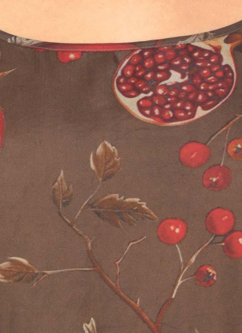 Crafted by Uma Wang, this captivating midi dress features a flowing silhouette and showcases a distinctive all-over design of pomegranates and berries against a rich brown backdrop. The delicate shoulder straps enhance its graceful appeal, making it a versatile piece for various occasions. Perfect for effortless elegance, the dress is made from premium viscose fabric, ensuring comfort and fluidity in movement.