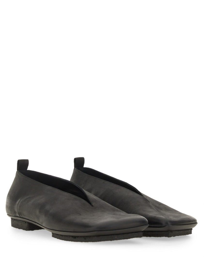 Uma Wang offers elegant ballerina flats that capture minimalism and sophistication. Crafted in Italy from premium 100% calf leather, these shoes showcase a distinctive V-shaped opening that enhances their sleek design. A subtle matte finish pairs with a low, textured sole, ensuring comfort and style, making them an ideal addition to any refined wardrobe.