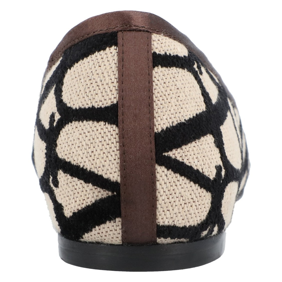 Valentino offers exquisite ballerinas that combine artistry with comfort. The designer jacquard showcases an iconographic motif on canvas. These slip-on shoes feature a round toe and low stacked heel. Bow details and an elastic strap add to their appeal and ease of wear, making them suitable for casual outings and elevated experiences.