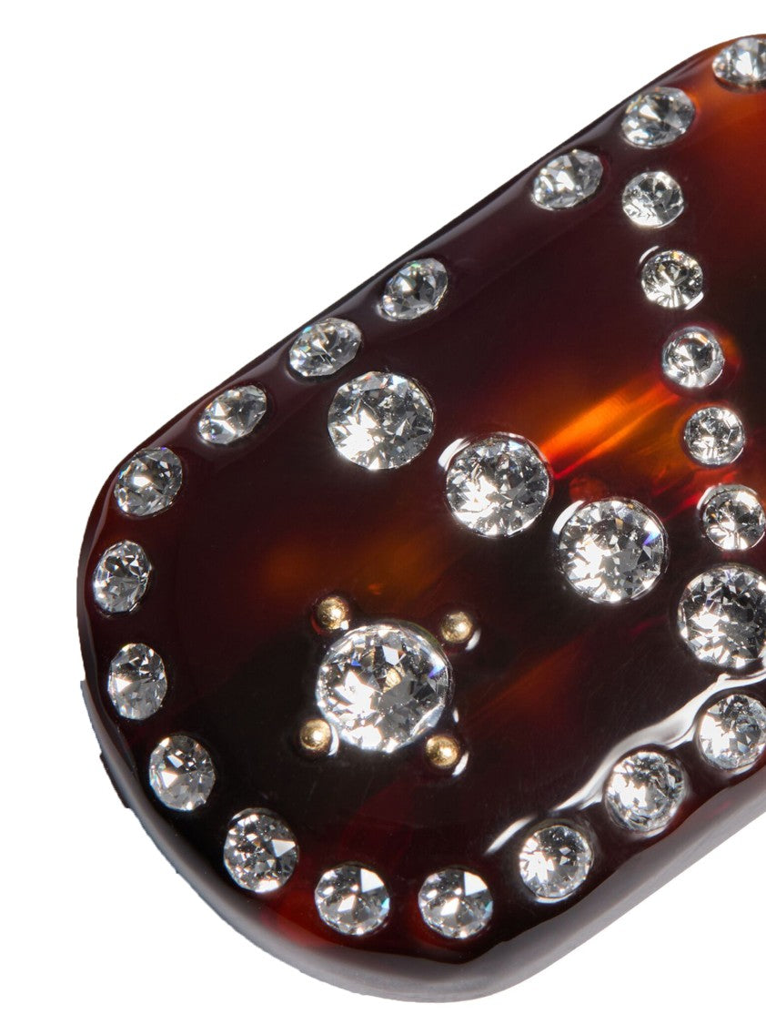 This hair clip by Valentino Garavani embodies modern elegance with its stunning crystal-embellished 'VLogo Signature'. The smooth, glossy finish adds to its sophisticated allure, while the secure metal clip closure keeps your hairstyle intact. Perfect for both casual and refined looks, it serves as a stylish accessory that exudes charm and glamour.