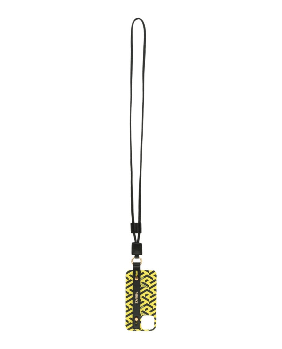 Versace presents a stunning iPhone 12 case that showcases an eye-catching all-over Greca print, embodying bold geometric elegance. Made from durable polyurethane, it safeguards your device while exuding vibrant style. The design includes a convenient hand strap and a detachable lanyard strap, merging functionality with fashion. This accessory is perfect for the modern woman, combining practicality with the unmistakable aesthetic of Versace.