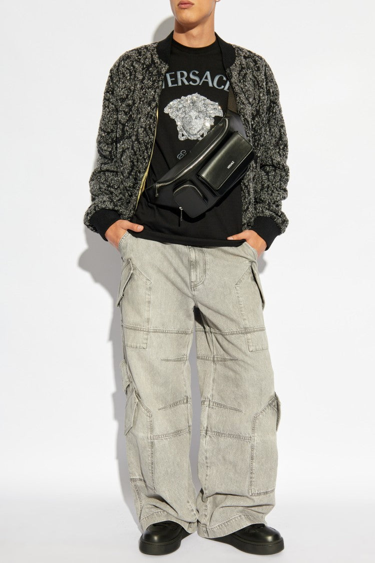 This Exclusive Versace T-Shirt Features An Iconic Medusa Head Emblem Embellished With Sequins On A Luxurious Black Backdrop. Made From Premium Cotton, It Blends Timeless Style With Modern Elegance, Suitable For Casual And Formal Occasions.