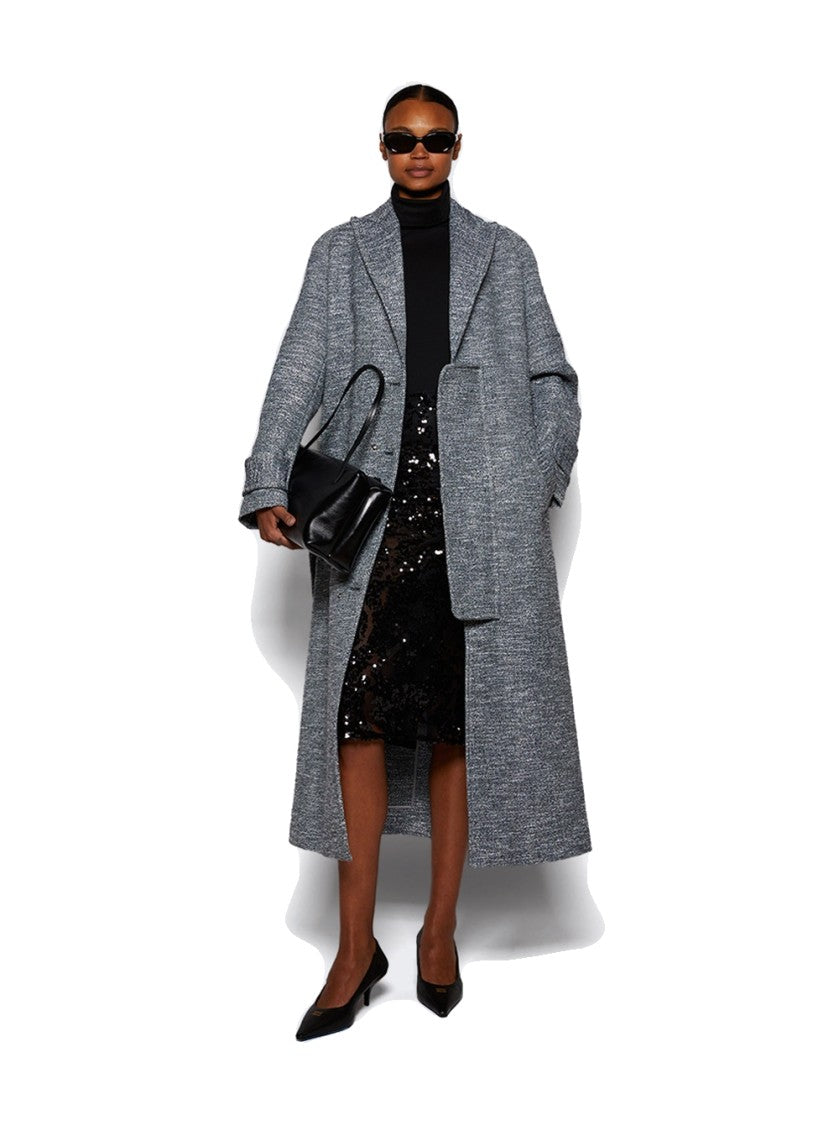 This striking midi-length pencil skirt from Victoria Beckham showcases a blend of elegance and allure. A concealed rear hook and zip fastening enhance the design, while captivating sequin embellishments are complemented by sheer fabric and delicate tulle inserts. A rear slit adds a contemporary touch, making it ideal for sophisticated occasions.