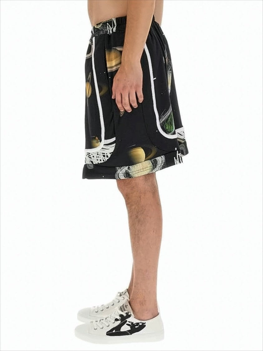 Elevate your casual wardrobe with these Vivienne Westwood jogger pants, showcasing a striking cosmic print featuring planets and abstract designs. The lightweight blend of polyamide and organic cotton ensures both comfort and style. A relaxed fit is complemented by an elastic waistband with a drawstring for adjustable comfort, making them ideal for streetwear enthusiasts.