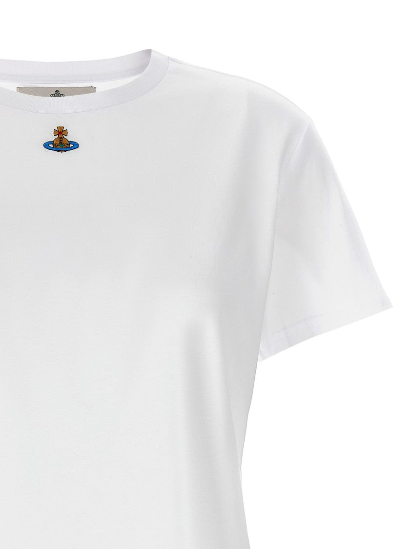Vivienne Westwood offers a classic cotton T-shirt that captures the essence of understated luxury. Made from premium cotton, this piece includes a crew neck and short sleeves, highlighted by a subtly embroidered Orb logo on the front chest. The minimalist design presents a straight hem and side slits, providing comfort and versatility for daily wear.