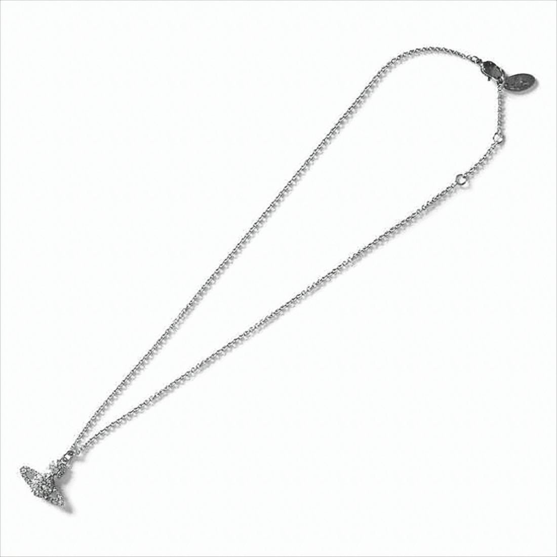 Vivienne Westwood presents a captivating pendant necklace that embodies refined elegance. This delicate piece features a stylized orb adorned with a cross, embellished with shimmering crystals that catch the light beautifully. Suspended from a fine chain that offers a sophisticated touch, it serves as a versatile accessory for any occasion.