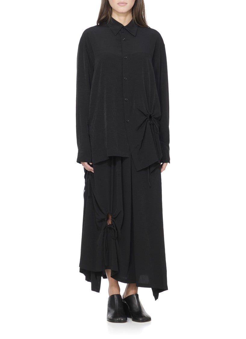 Y'S Introduces A Stylish Shirt Tailored For The Modern Woman, Featuring A Classic Collar And Long Sleeves Adorned With Unique Cut-Out Details On Both The Front And Back. The Button Fastening At The Front, Along With A Chic Tie Detail On One Side, Enhances Its Contemporary Silhouette, Making It A Perfect Addition To Any Wardrobe.