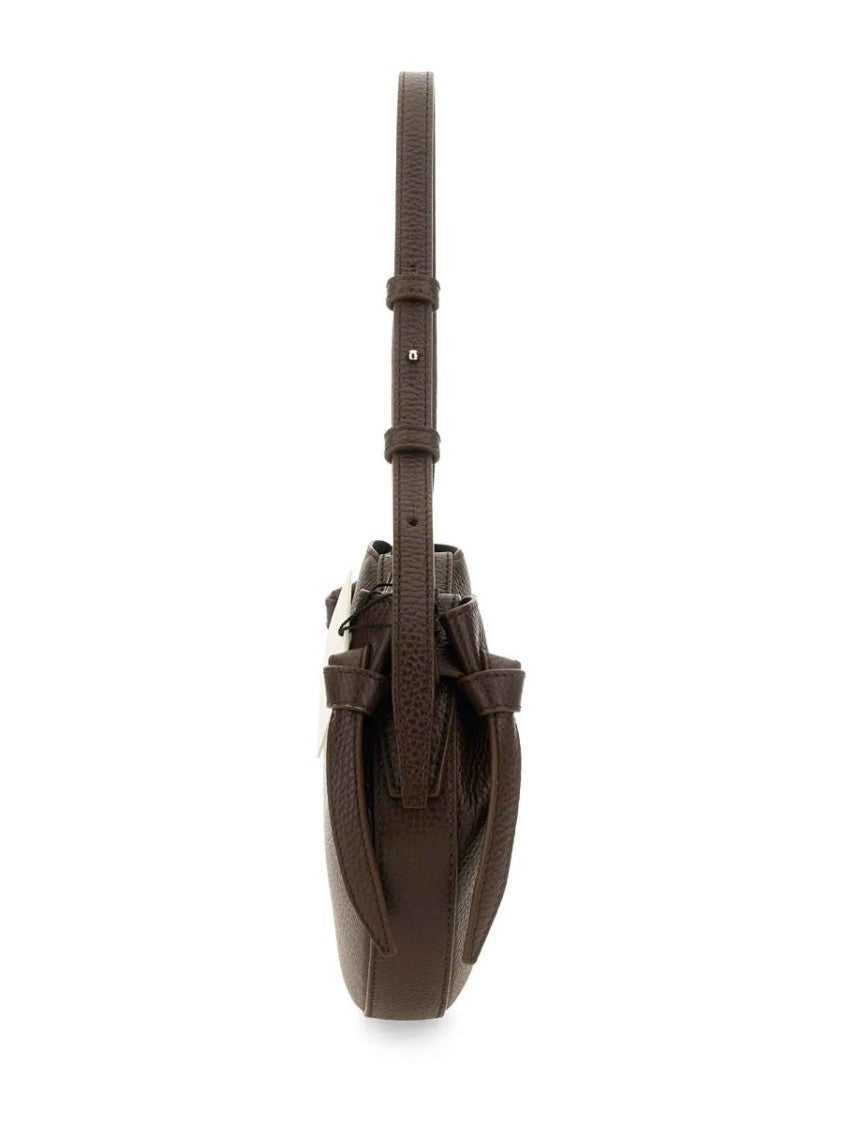 Yuzefi introduces the 'Fortune Cookie' handbag, a sophisticated accessory that epitomizes minimalist design. This crescent-shaped bag features a smooth, pebbled texture and structured silhouette, offering an adjustable shoulder strap adorned with knot details. The zip closure at the top ensures secure storage, while subtle branding on the front provides an understated yet refined touch. Elevate your casual ensemble with this versatile piece, perfect for those who appreciate elegance in simplicity.