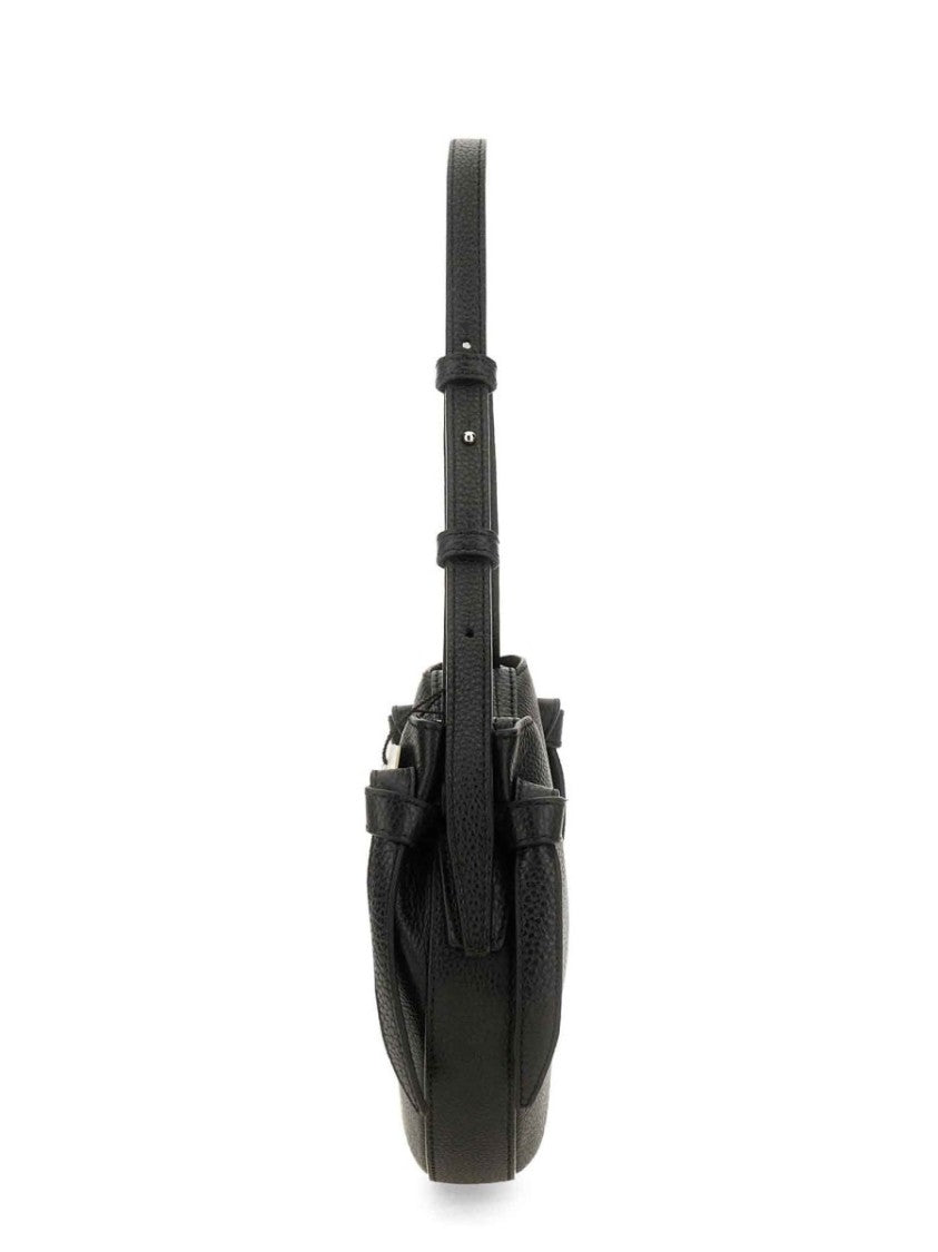 The Yuzefi 'Fortune Cookie' shoulder bag epitomizes understated elegance with its crescent-shaped silhouette and smooth, pebbled texture. Thoughtfully designed, it features an adjustable strap for versatile wear and subtle side knot details that enhance its minimalist aesthetic. The compact structure boasts a discrete logo on the front, embodying contemporary sophistication that complements any wardrobe.