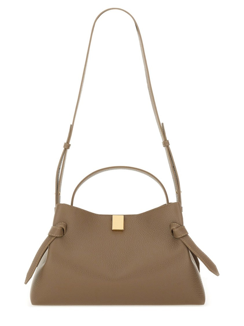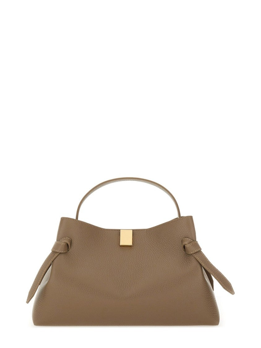 The Gyoza bag by Yuzefi features a soft yet structured silhouette made from premium bovine leather. Its unique design includes an elegant top handle, an adjustable shoulder strap, and refined tie details at the sides, finished with a subtle gold-tone clasp. This versatile accessory enhances any outfit, blending casual charm with sophisticated allure.