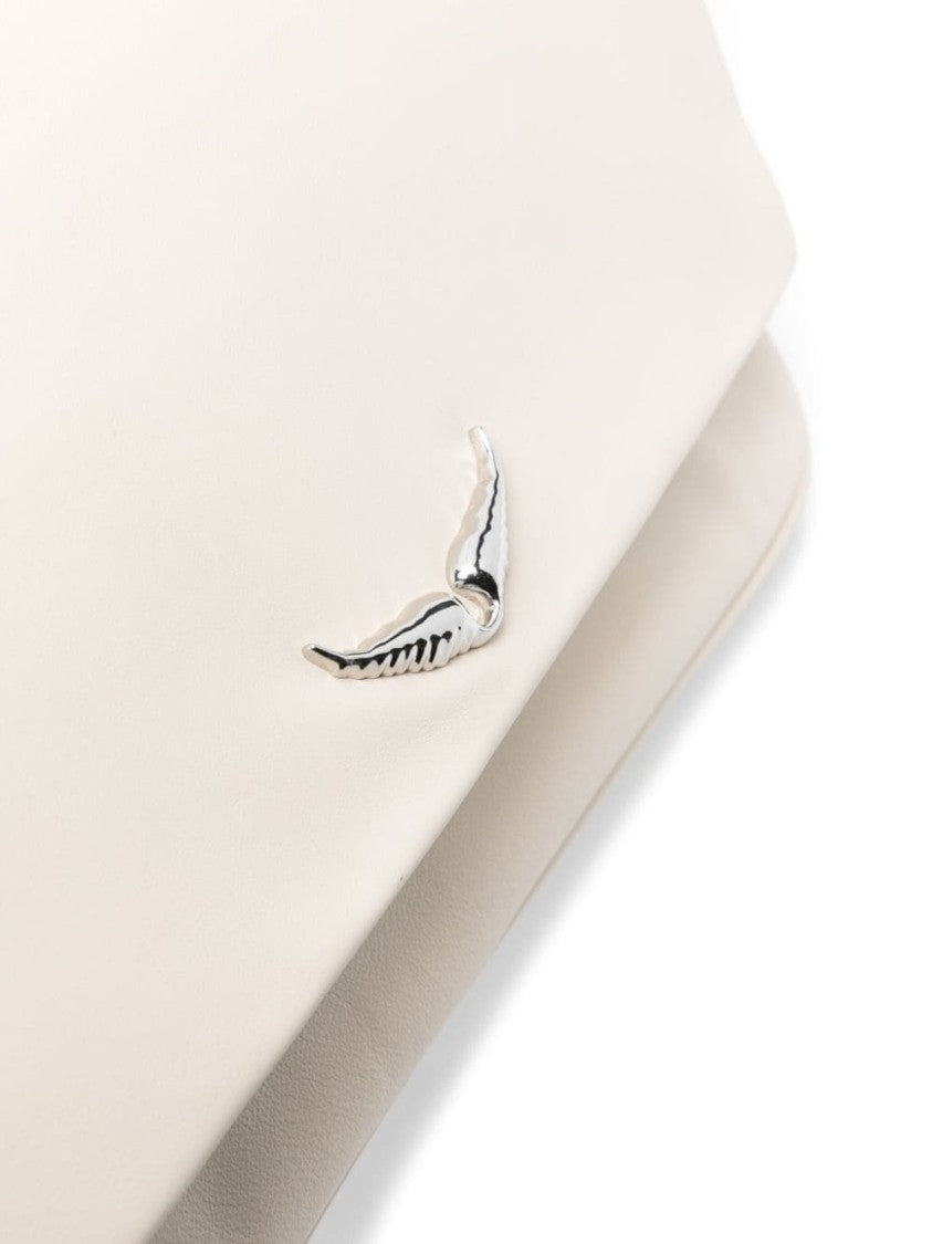 This elegant large clutch bag by Zadig & Voltaire features a refined light beige calf leather exterior with a smooth grain texture. The foldover top with magnetic fastening ensures secure access, while front and rear zip-fastening pockets add convenience.