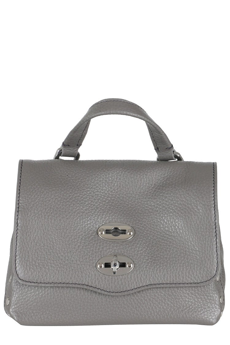 Zanellato's Daily Baby Postina bag embodies contemporary luxury with its structured silhouette and textured leather finish. Featuring a distinctive swivel closure, top handle, and a removable shoulder strap, this bag offers versatility for any occasion. The gray montebianco color highlights its elegance, while the silver metallic details elevate its aesthetic appeal.