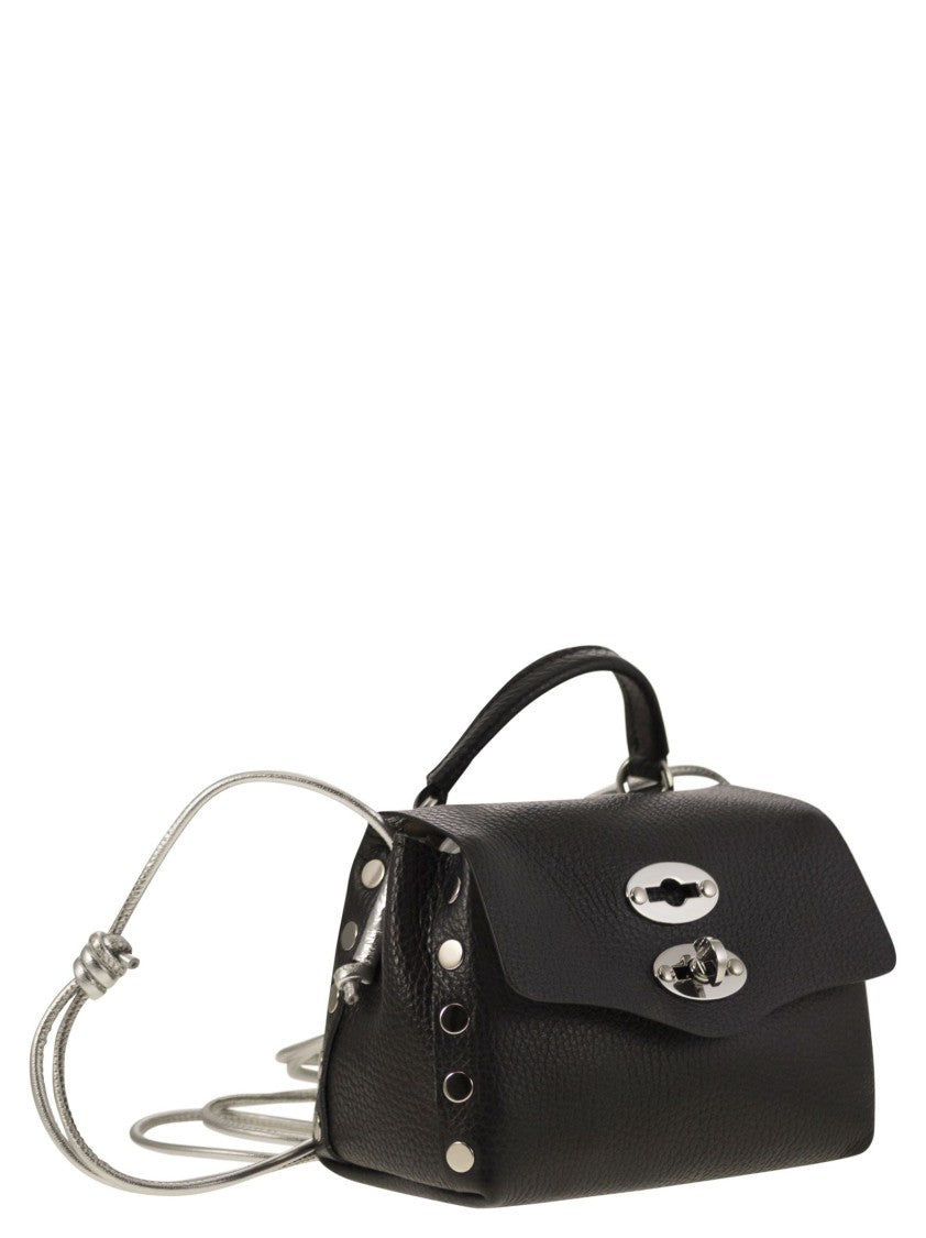Experience the perfect blend of sophistication and practicality with the Postina® shoulder bag by Zanellato. This compact accessory showcases a structured silhouette, adorned with a double clasp closure and decorative metallic accents. The soft leather exterior is resistant to wear and water, ensuring longevity and style. The thin metallic shoulder strap offers versatile wear, allowing you to carry the bag by hand or over the shoulder. Perfect for daily endeavors, this bag epitomizes luxury in everyday life.
