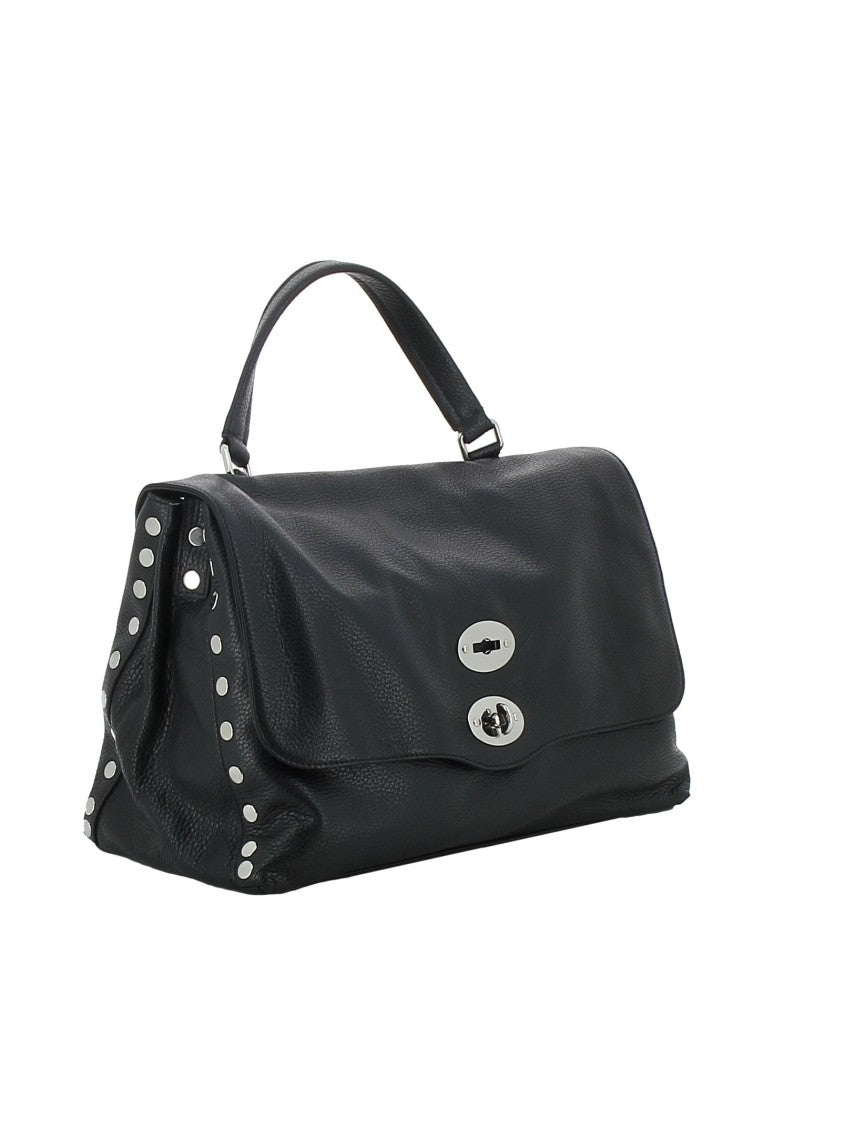 The Zanellato Postina Media Daily Nera bag showcases a refined design made from supple leather. Its standout flap closure and metallic details enhance its appeal, while the top handle and shoulder strap provide practical carrying options. Perfect for everyday wear.